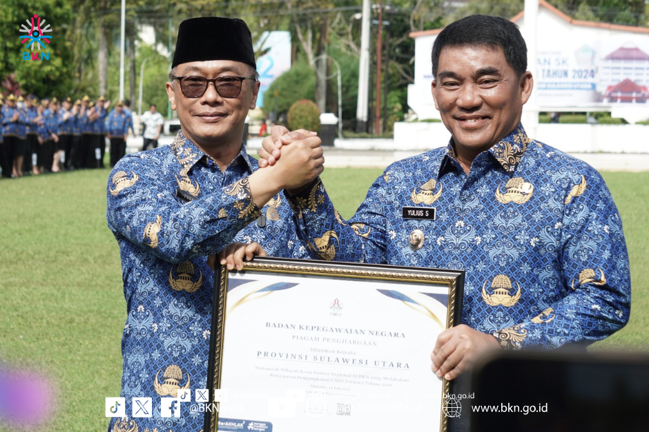 Manado – Humas BKN, Kepala Badan Kepegawaian Negara (BKN), Prof. Zudan Arif menyampaikan apresiasi tinggi kepada Pemerintah Provinsi Sulawesi Utara atas komitmen dan kecepatannya dalam proses pengangkatan Pegawai Pemerintah dengan Perjanjian Kerja (PPPK) Tahun Anggaran 2024. Terhitung 3.420 PPPK Provinsi Sulawesi Utara yang ikut seleksi pada 2024 lalu telah menerima Surat Keputusan atau SK Pengangkatan TMT 01 Juli 2025.