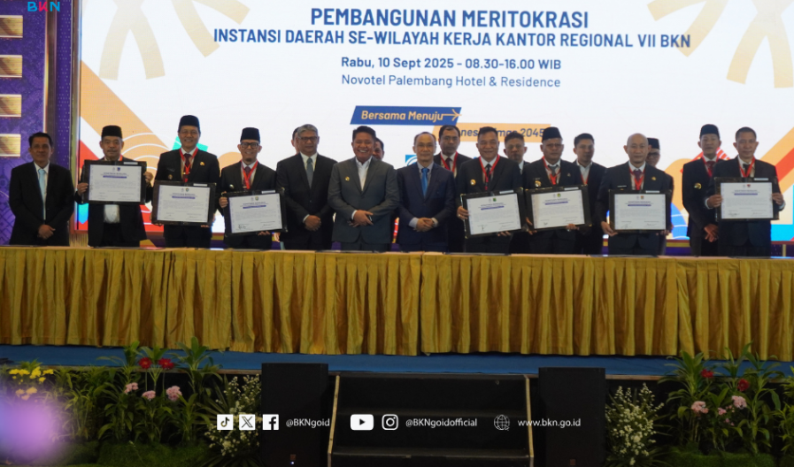 Palembang – Humas BKN, Kepala Badan Kepegawaian Negara (BKN) Prof. Zudan bersama seluruh kepala daerah se-wilayah kerja Kantor Regional VII BKN Palembang menandatangani komitmen bersama dalam pembangunan meritokrasi di daerah melalui penerapan manajemen talenta. Penandatanganan ini menjadi momentum penting untuk menegaskan komitmen para pemimpin daerah dalam mewujudkan birokrasi yang bersih, profesional, dan berorientasi pada kinerja.