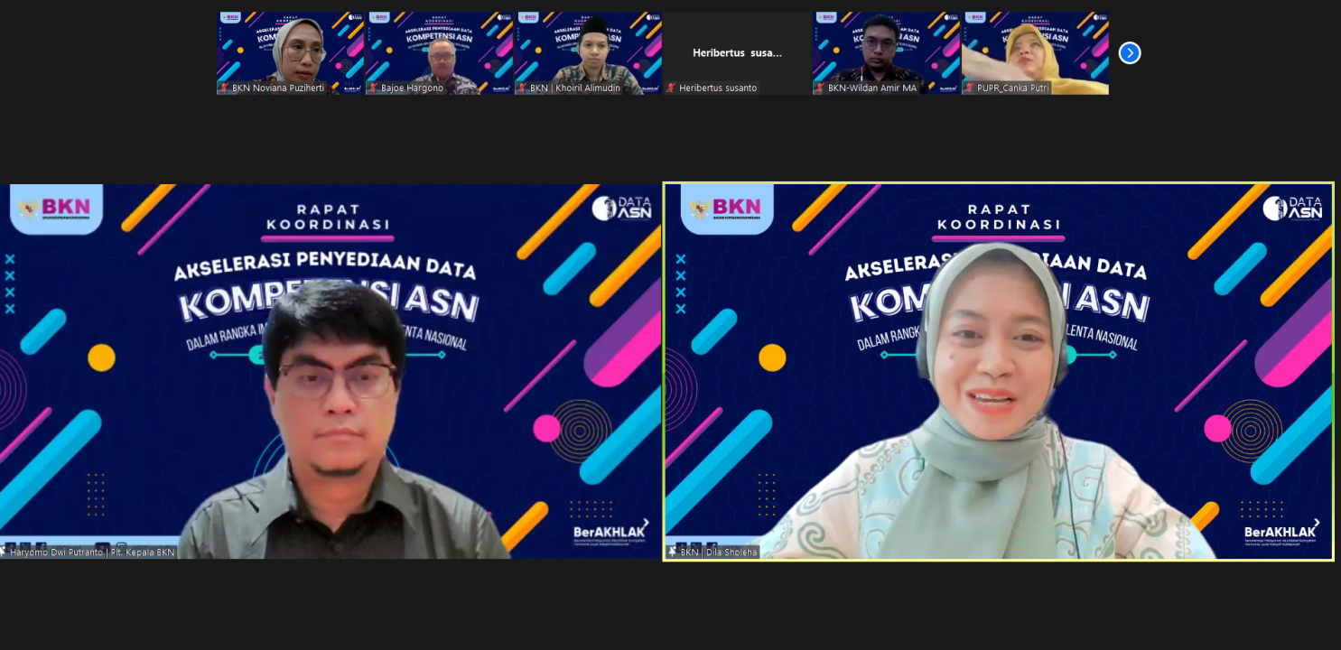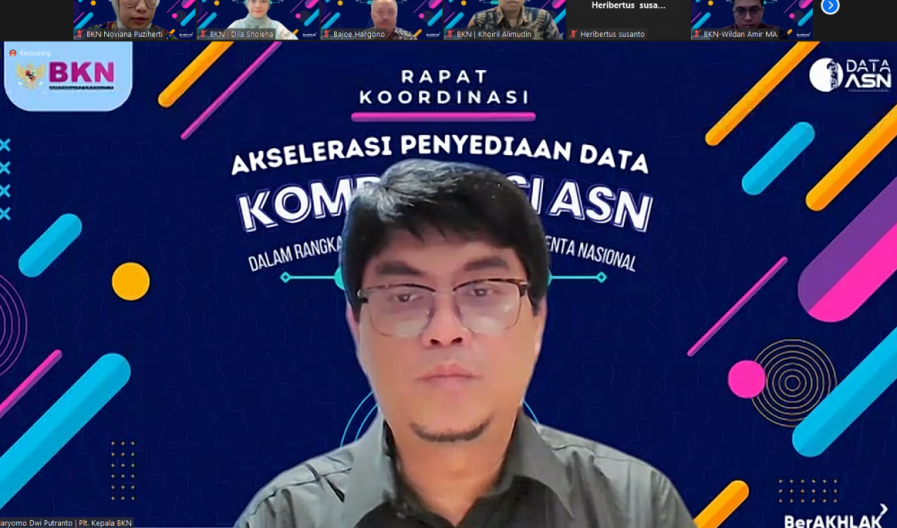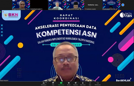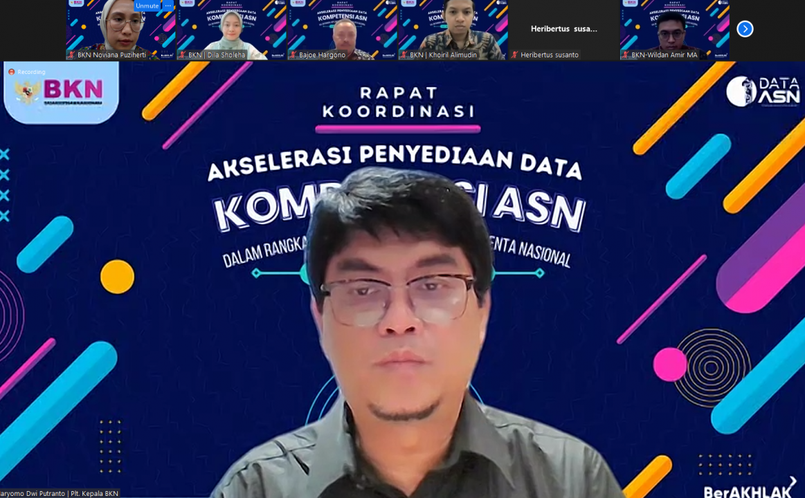 Jakarta – Humas BKN, Badan Kepegawaian Negara (BKN) sebagai instansi pembina manajemen kepegawaian tengah menyiapkan data potensi dan kompetensi Aparatur Sipil Negara (ASN) secara berkesinambungan untuk mempermudah instansi menyiapkan dan mendapatkan talenta terbaik dalam mengisi posisi kunci yang mendukung urusan organisasi. Penyediaan data ini merupakan program yang telah diamanatkan oleh Presiden RI Joko Widodo untuk mendukung implementasi manajemen talenta termasuk sistem meritnya. Hal ini disampaikan oleh Plt. Kepala BKN Haryomo Dwi Putranto dalam Rapat Koordinasi (Rakor) Akselerasi Penyediaan Data Kompetensi ASN dalam Rangka Implementasi Manajemen Talenta Nasional pada Jumat, (20/10/2023) secara daring.