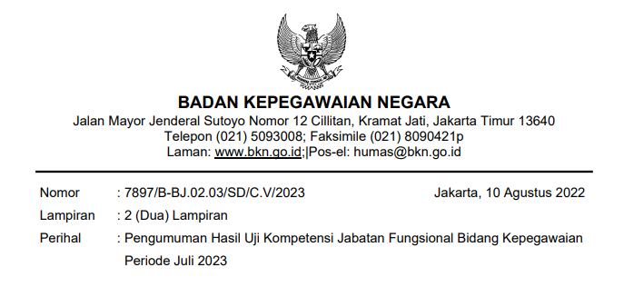 Pengumuman Hasil Uji Kompetensi Jabatan Fungsional Bidang Kepegawaian Periode Juli 2023