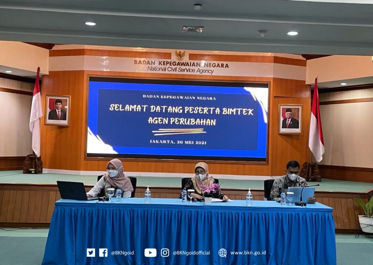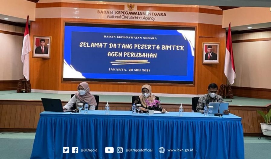 Jakarta – Humas BKN, Biro Perencanaan dan Organisasi BKN memfasilitasi Bimbingan Teknis atau Bimtek membekali para Agen Perubahan di lingkungan BKN dalam memahami Reformasi Birokrasi (RB). Acara tersebut digelar pada Kamis, (20/5/2021), secara daring dan luring. Bimtek tersebut diikuti para agen perubahan dari unit kerja di BKN Pusat, Kantor Regional, Pusbangpeg ASN dan UPT BKN.