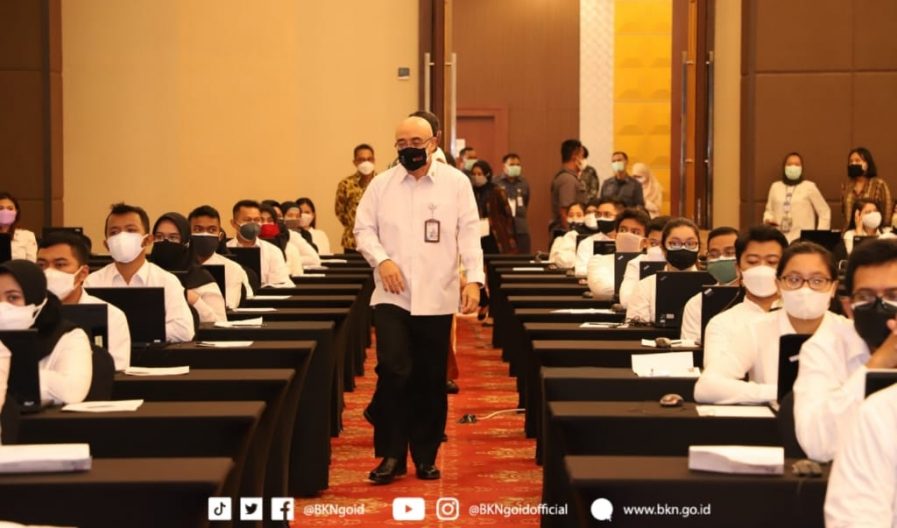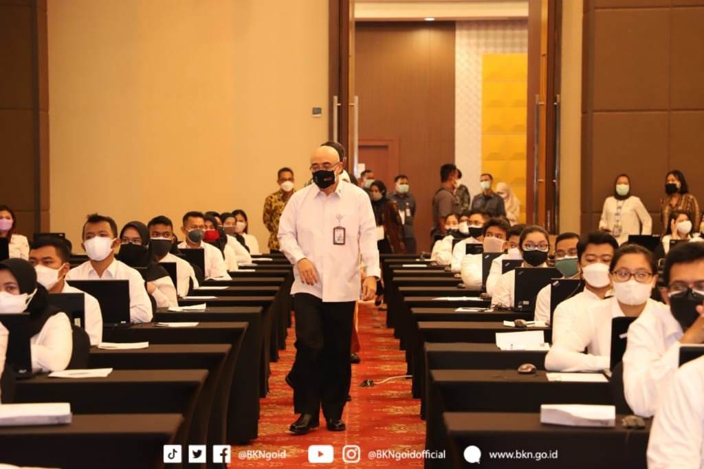 Jakarta – Humas BKN, Dalam tinjauannya ke Tilok SKD Seleksi Calon ASN Tahun 2021 Kementerian PPN/Bappenas, Rabu (06/10/2021) di Jakarta, Plt Kepala BKN Bima Haria Wibisana menyebutkan bahwa selama 7 (tujuh) tahun digunakan dalam pelaksanaan seleksi, BKN terus mengembangkan sistem teknologi Computer Assisted Test (CAT) untuk meningkatkan kualitas penerimaan ASN. Salah satunya dengan inovasi baru seperti fitur face recognition untuk menghindari terjadinya percaloan di lokasi ujian.