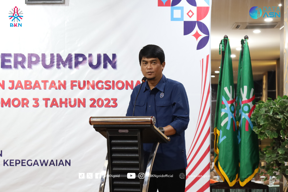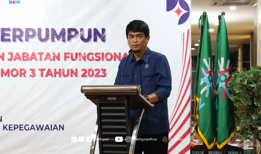 Bandung, Humas-BKN. “Ide awal dalam pembentukan jabatan fungsional (JF) adalah mempermudah perolehan angka kreditnya,” ucap Haryomo Dwi Putranto selaku Plt. Kepala Badan Kepegawaian Negara (BKN) dalam arahan acara Diskusi Kelompok Terpumpun Pemantauan dan Evaluasi Pembinaan Jabatan Fungsional Pasca Peraturan BKN Nomor 3 Tahun 2023, bertempat di Ruang Aula Rama Sintha Kantor Regional (Kanreg) III BKN Bandung, Jumat (3/05/2024). Acara yang dilaksanakan secara hybrid dan disiarkan secara langsung melalui kanal youtube BKN ini dihadiri oleh seluruh Kepala Kanreg I hingga XIV BKN serta BKPSDM/BKPP atau yang mewakili di wilayah kerja (wilker) Kanreg III BKN yang hadir secara luring dan BKPSDM/BKPP atau yang mewakili di wilker Kanreg I, II, IV sampai dengan XIV BKN yang hadir secara daring.