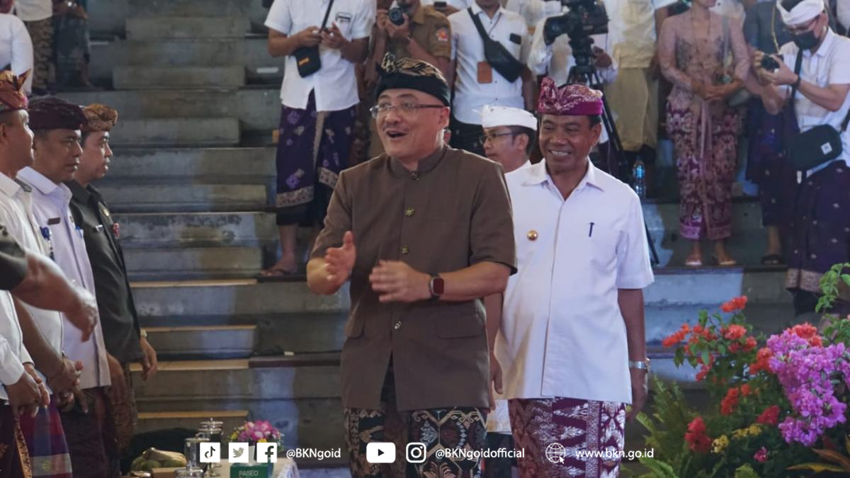 Denpasar – Humas BKN, Plt. Kepala BKN, Bima Haria Wibisana mengapresiasi peluncuran digitalisasi pelayanan kepegawaian di Kabupaten Buleleng sebagai adaptasi menuju Sistem Pemerintahan Berbasis Elektronik (SPBE). Hal ini sejalan dengan upaya BKN untuk terus meningkatkan kualitas layanan melalui penyederhanaan proses bisnis dari 11 tahap menjadi 3 tahap serta digitalisasi layanan kepegawaian sebagai bentuk dari transformasi layanan digital yang dilakukan oleh BKN.