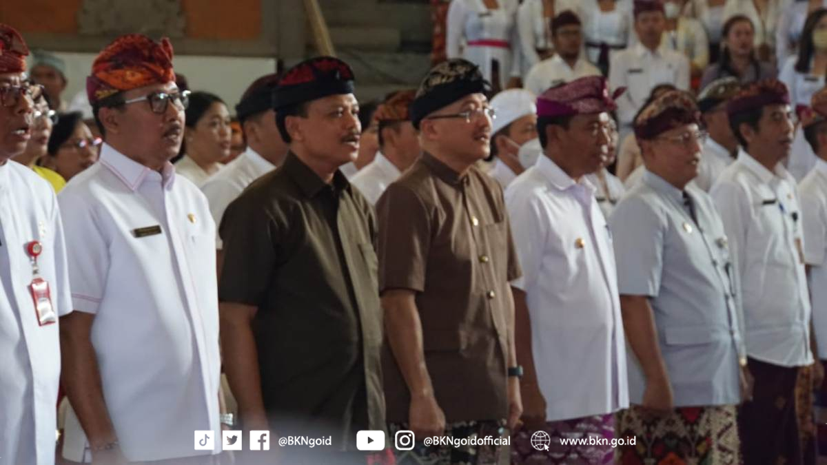 Kegiatan yang juga dihadiri oleh Kepala Kantor Regional X BKN Bali, Paulus Dwi Laksono ini dirangkaikan dengan penyerahan secara digital surat keputusan (SK) kenaikan pangkat periode April 2023 kepada 656 orang Pegawai Negeri Sipil (PNS) di lingkungan Pemkab Buleleng. Hadir dalam kesempatan ini, Penjabat Bupati Buleleng, Ketut Lihadnyana, Sekda Provinsi Bali Dewa Made Indra, Sekda Buleleng Gede Suyasa, Sekda Kab/Kota se-Bali, Pimpinan OPD dan sejumlah pegawai penerima sertifikat kenaikan pangkat.