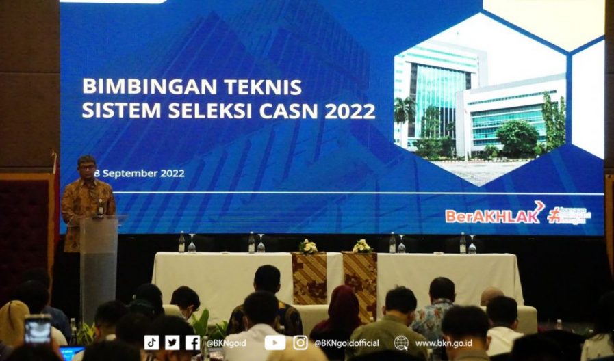 Jakarta – Humas BKN, Badan Kepegawaian Negara (BKN) melalui Kedeputian Bidang Sistem Informasi Kepegawaian menggelar Sosialisasi dan Bimbingan Teknis Admin SSCASN PPPK bagi perwakilan administrator (lazim disebut admin) dari 56 instansi pusat sebagai persiapan seleksi CASN 2022, Rabu (28/9/2022), di Jakarta. Kegiatan tersebut digelar setelah penetapan formasi Pegawai Pemerintah dengan Perjanjian Kerja (PPPK) tahun 2022 yang disampaikan oleh Kementerian PANRB.