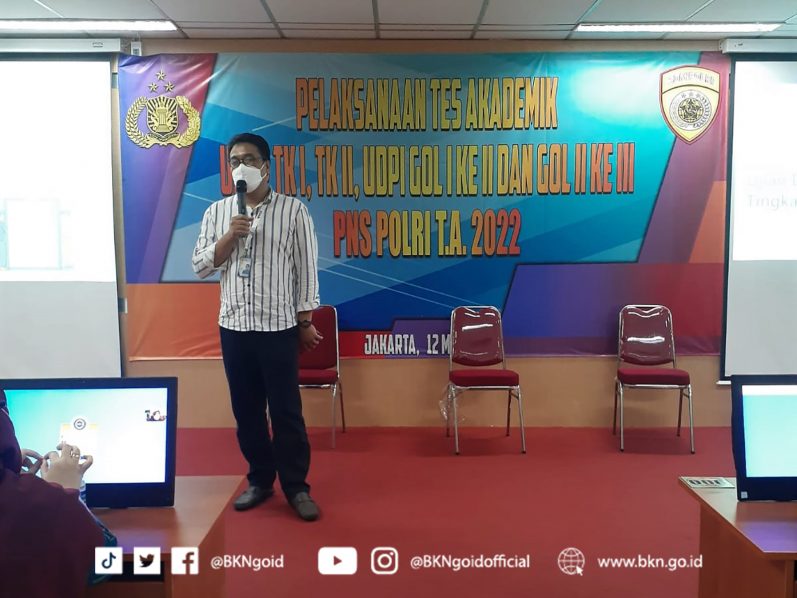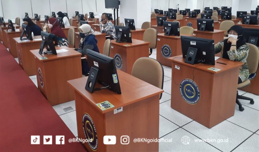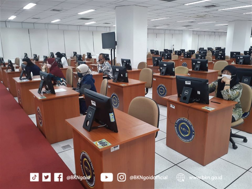 Jakarta-Humas BKN, Badan Kepegawaian Negara menyelenggarakan Computer Assisted Test(CAT) untuk Ujian Dinas (UD) tingkat I, tingkat II, dan Ujian Penyesuaian Kenaikan Pangkat (UPKP) bagi pegawai di lingkungan BKN pada Jumat (13/5/2022) di ruang CAT Kantor BKN Pusat, Jakarta. Komponen ujian tersebut di antaranya ujian CAT yang dilaksanakan secara luring dengan menerapkan protokol kesehatan dan ujian makalah UPKP dan PPP yang akan dilakukan secara daring.
