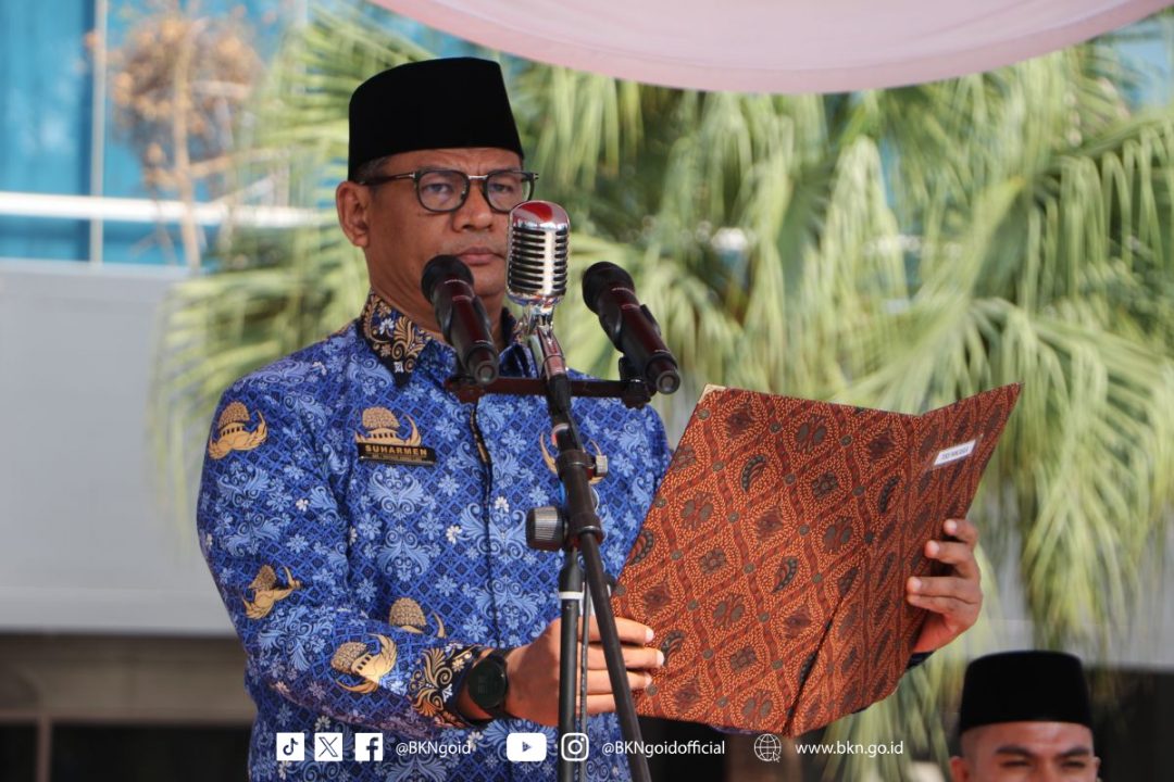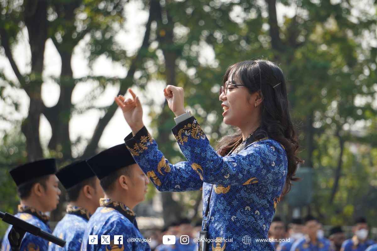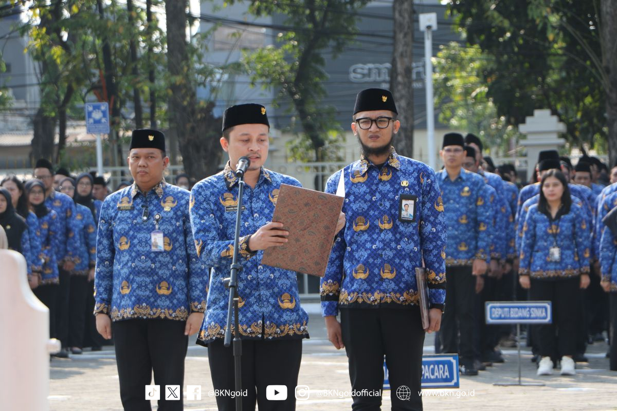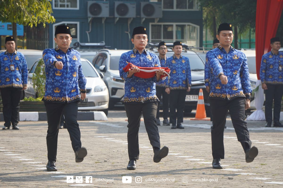 Badan Kepegawaian Negara (BKN) menyelenggarakan Upacara Peringatan Hari Sumpah Pemuda ke-95 Tahun 2023 yang diikuti oleh seluruh Pejabat Tinggi Madya dan Pratama serta pegawai di lingkungan BKN pada Senin (30/10/2023) di Kantor BKN Pusat, Jakarta. Bertindak sebagai Inspektur upacara Deputi Bidang Sistem Informasi Kepegawaian Suharmen.