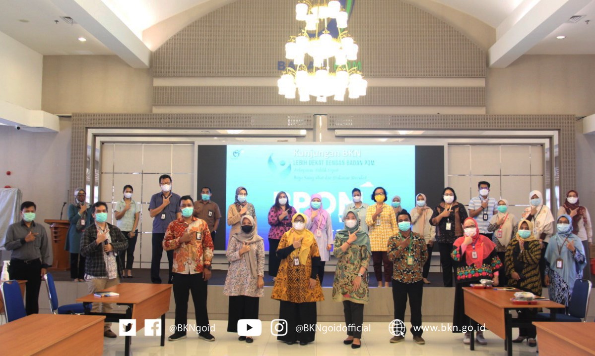 Jakarta – Humas BKN, Sebagai upaya peningkatan kompetensi SDM yang mengelola Pelayanan Kepegawaian Terpadu (PKT), Biro Humas Hukum dan Kerja Sama BKN yang diwakili oleh Tim Pranata Humas melakukan studi banding (benchmark) ke Badan Pengawasan Obat dan Makanan (Badan POM), Jumat (26/2/2021). Salah satu perwakilan BKN yakni Pranata Humas Ahli Madya, Subagyo menyebutkan studi banding ini dilakukan untuk meningkatkan layanan PKT di lingkungan BKN, khususnya dalam penyesuaian layanan dengan mengusung konsep adaptasi baru.
