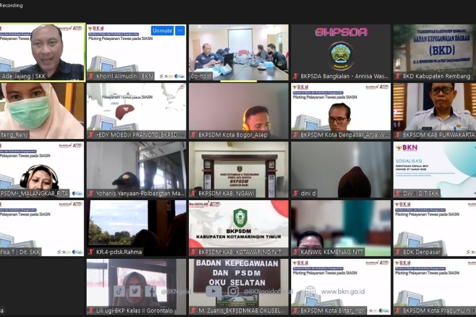 Jakarta – Humas BKN, Untuk meningkatkan pelayanan kepegawaian baik dari aspek proses bisnis maupun aspek sistem yang digunakan dalam penetapan pensiun tewas, Badan Kepegawaian Negara (BKN) melalui Direktorat Status dan Kedudukan Kepegawaian (SKK) dan Direktorat Pembangunan dan Pengembangan Sistem Informasi Aparatur Sipil Negara (PPSIASN) resmi meluncurkan aplikasi usul penetapan ASN tewas melalui SIASN. Hal tersebut disampaikan Direktur SKK, Paryono pada kegiatan Piloting Pelayanan Tewas pada SIASN yang dihadiri oleh BKD/BKPSDM/BKPP instansi daerah pada wilayah kerja Kantor Regional I-XIV BKN secara daring melalui virtual zoom, Selasa (13/06/2023).