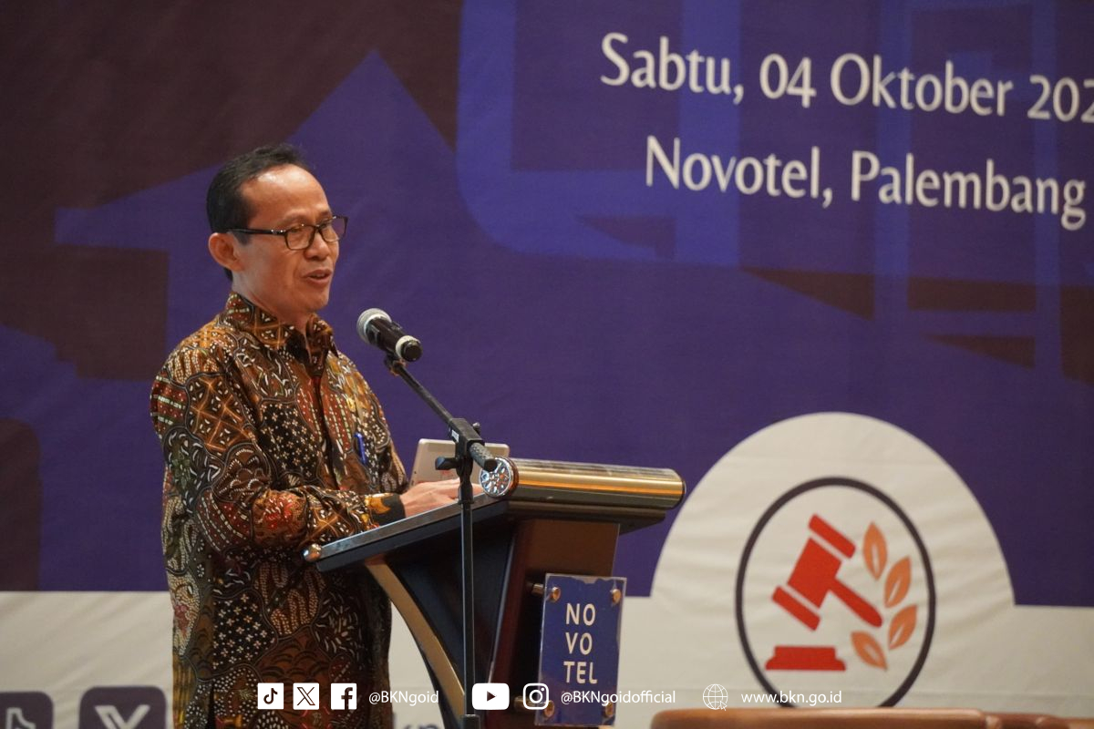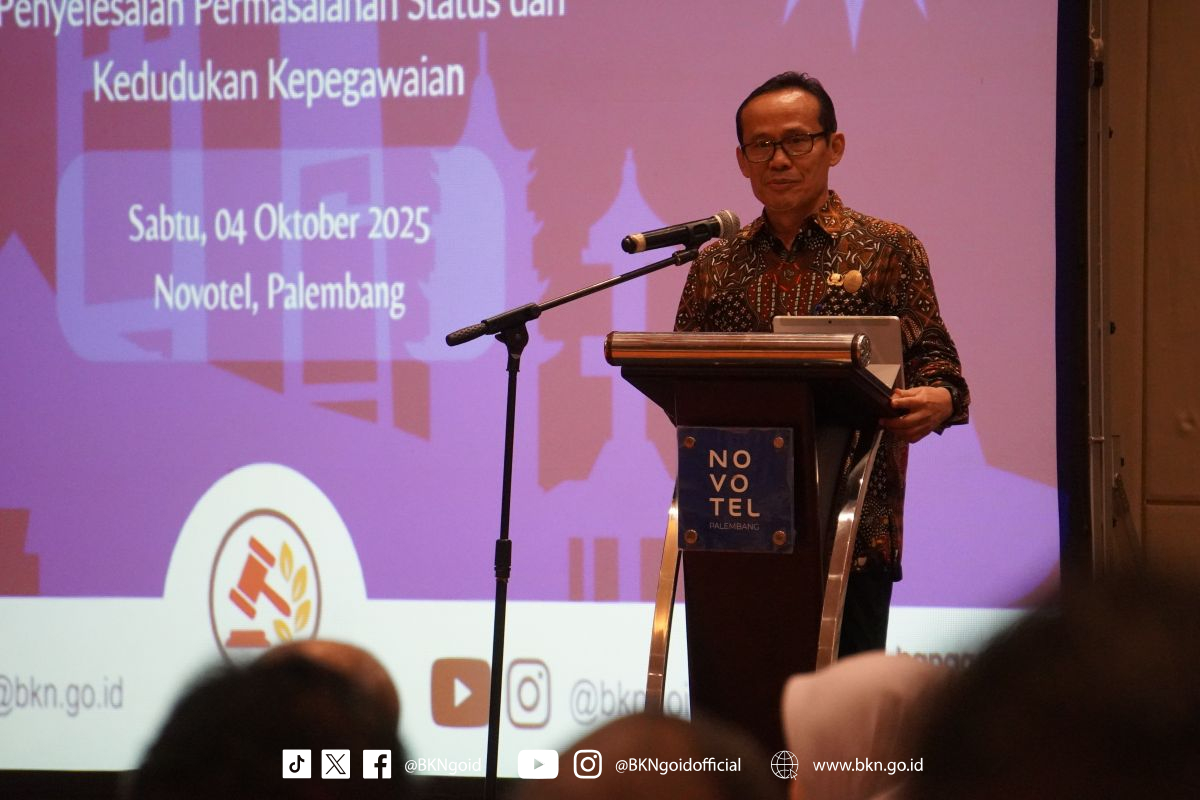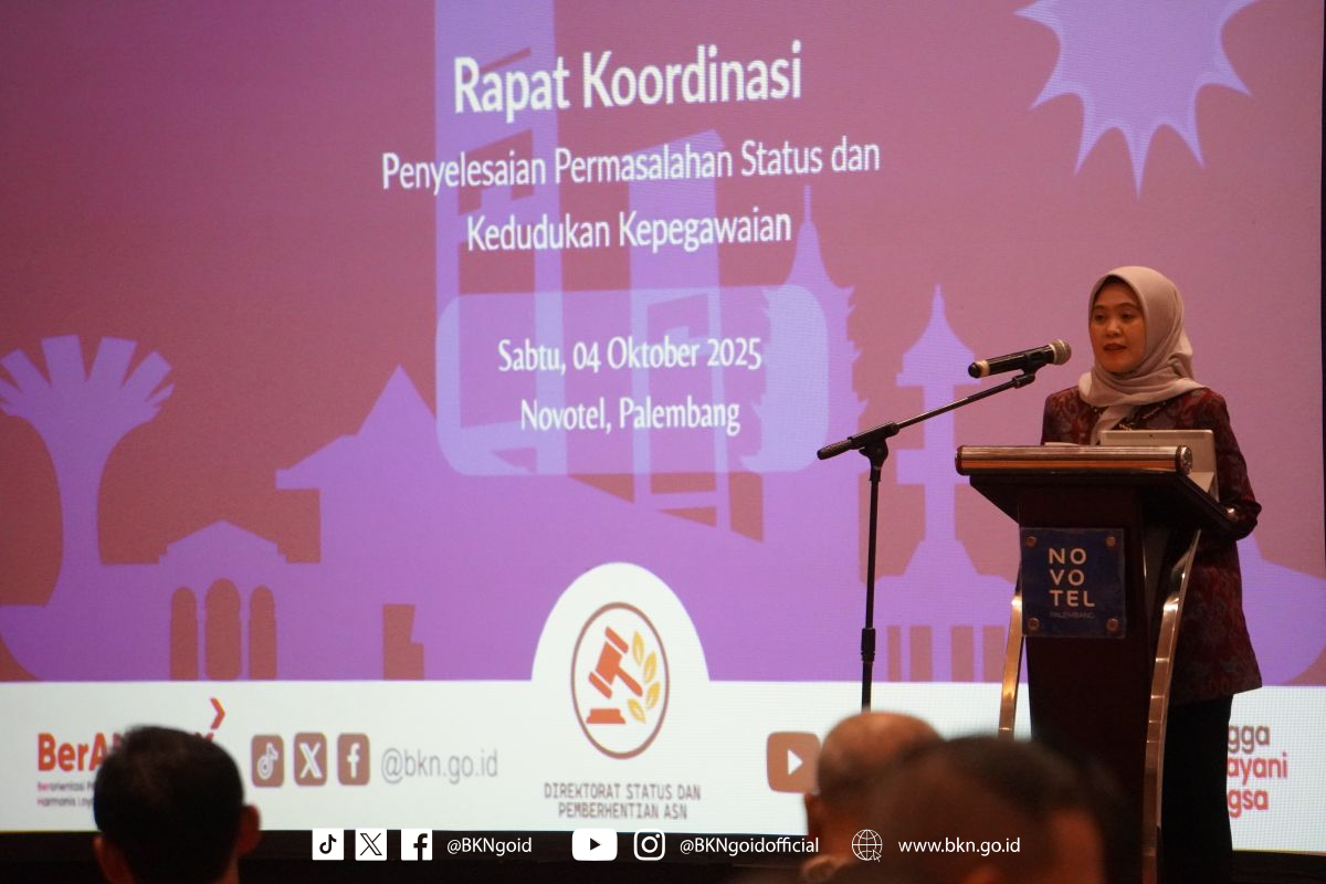 Palembang – Humas BKN, Sebagai evaluasi tindak lanjut regulasi dan implementasi teknis layanan kepegawaian di instansi daerah wilayah kerja Kantor Regional VII Badan Kepegawaian Negara (BKN) Palembang, Direktorat Status dan Pemberhentian ASN mengundang 43 instansi daerah untuk mereviu layanan status dan kedudukan kepegawaian di instansinya melalui Rapat Koordinasi Teknis (Rakornis), Sabtu (04/10/2025) di Kota Palembang.