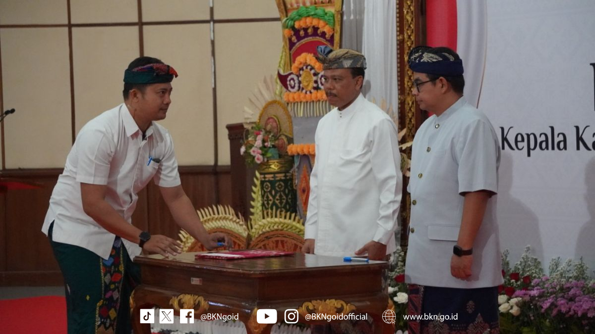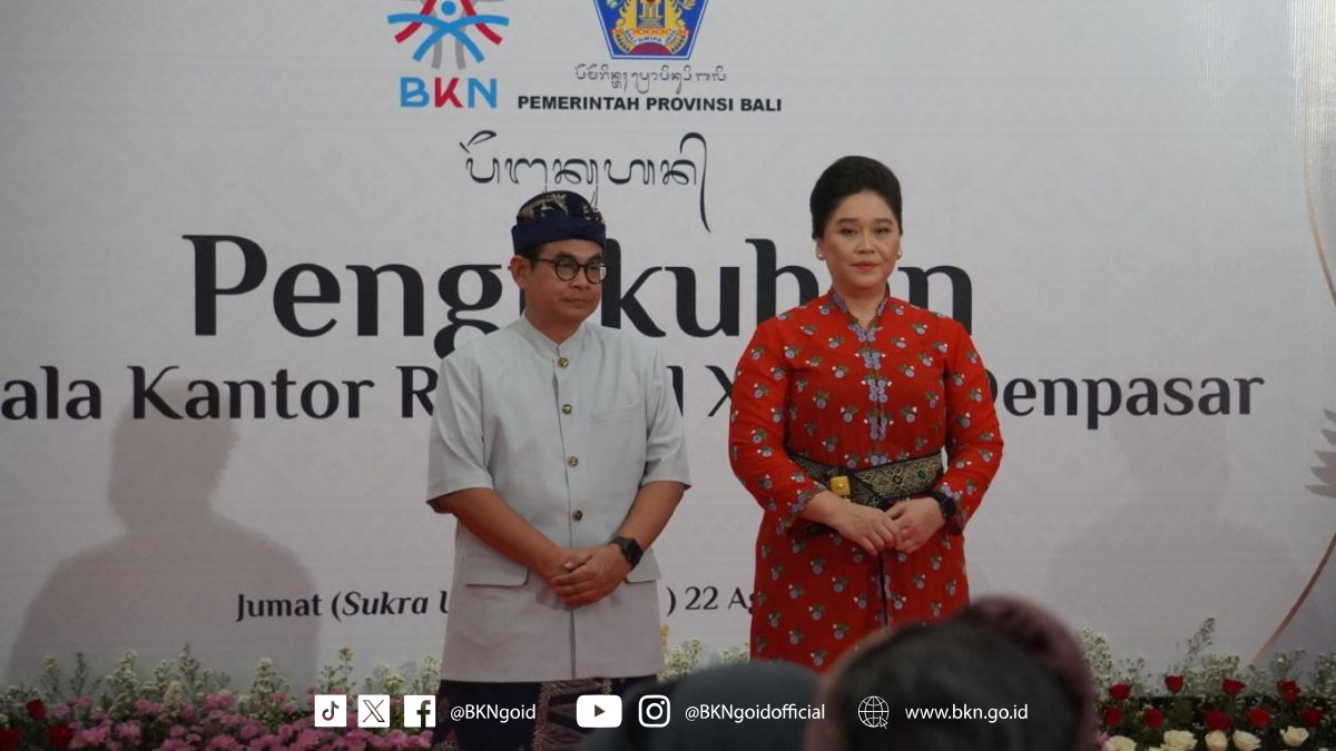 Denpasar – Humas BKN, Sebagai perwakilan layanan Badan Kepegawaian Negara (BKN) terhadap pengelolaan ASN di wilayah kerja Kantor Regional X VKN Denpasar, Wakil Kepala BKN Haryomo Dwi Putranto menyaksikan pengukuhan Satya Pratama sebagai Kepala Kanreg X BKN Denpasar pasca-perubahan SOTK terbaru BKN. Pengukuhan yang dilaksanakan oleh pihak pemerintah Provinsi Bali ini berlangsung di Gedung Wiswa Sabbha Utama, Kantor Gubernur Bali, Niti Mandala Renon, Jumat (22/08/2025).