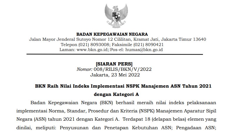 Nomor: 008/RILIS/BKN/V/2022