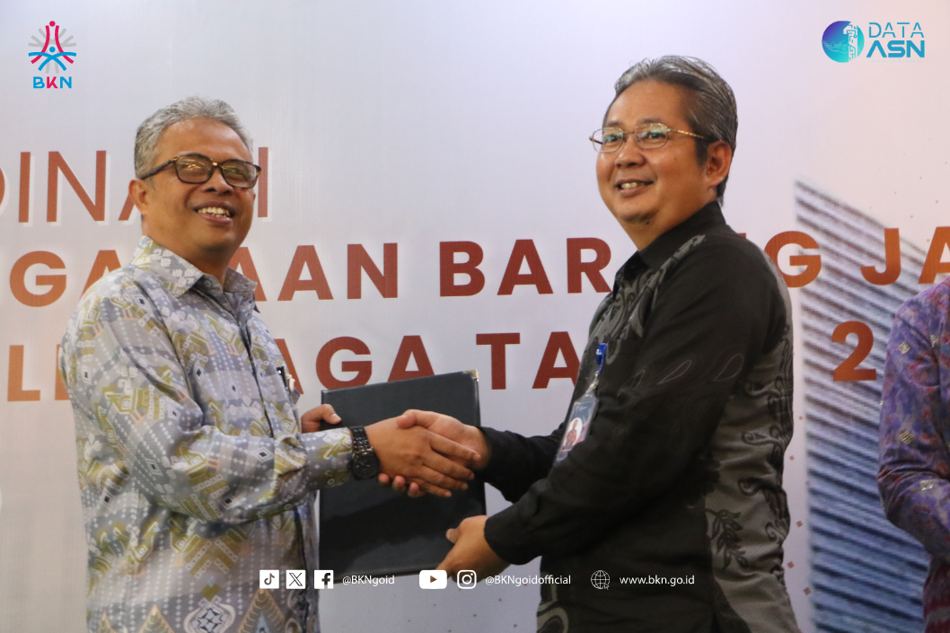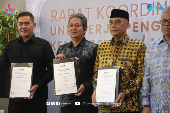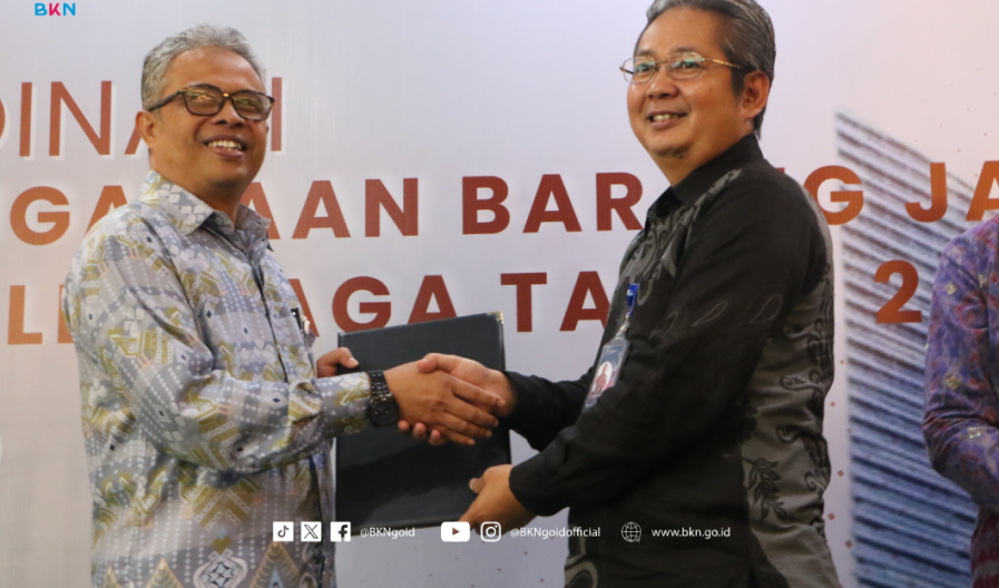 Jakarta – Humas BKN, Badan Kepegawaian Negara (BKN) meraih penghargaan atas tercapainya Unit Kerja Pengadaan Barang/Jasa (UKPBJ) level 3 (Proaktif) pada penyelenggaraan Rapat Koordinasi UKPBJ Tahun 2024 oleh Lembaga Kebijakan Pengadaan Barang/Jasa Pemerintah (LKPP). Penghargaan tersebut diserahkan langsung oleh Sekretaris Utama LKPP, Iwan Herniawan kepada Kepala Biro Umum BKN, Nanang Subandi, di ruang Roestam Sjarief, Kantor LKPP, pada Kamis (04/07/2024). BKN termasuk dalam 24 (dua puluh empat) instansi pada Sistem Informasi Model Kematangan UKPBJ (SIMKU) yang meraih kematangan UKPBJ Level 3, dengan tingkat “Proaktif”, dari 82 (delapan puluh dua) UKPBJ.