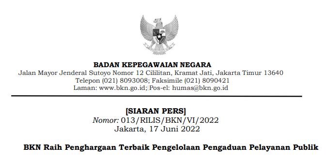 Selengkapnya dapat diunduh melalui link: Siaran Pers Nomor _ 013_RILIS_BKN_VI_2022 Jakarta, 17 Juni 2022