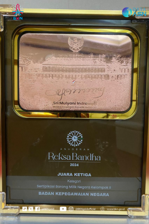 Penghargaan yang diselenggarakan Direktorat Jenderal Kekayaan Negara atau DJKAN Kementerian Keuangan RI diterima oleh perwakilan BKN melalui Kepala Biro Umum BKN Nanang Subandi, Kamis, (05/12/2024) di Gedung Dhanapala, Kantor Pusat Kemenkeu, Jakarta. Anugerah Reksa Bandha ini sendiri merupakan ajang tahunan yang diselenggarakan Direktorat Jenderal Kekayaan Negara atau DJKAN Kementerian Keuangan RI untuk memberikan penghargaan kepada instansi pemerintah yang menunjukkan kinerja terbaik dalam pengelolaan BMN, mulai dari pemanfaatan, pengamanan, hingga sertifikasi dan pendayagunaan aset negara.