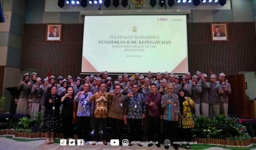 Bogor – Humas BKN, Sebanyak 30 mahasiswa yang merupakan Pegawai Negeri Sipil (PNS) dari Kementerian/Lembaga/Daerah (K/L/D) resmi dinyatakan lulus dari Pendidikan Ilmu Kepegawaian (PIK) Badan Kepegawaian Negara (BKN) Program Studi Strata Satu (S.1) Ilmu Administrasi Negara Bidang Minat Administrasi dan Manajemen Kepegawaian. Hal itu disampaikan Kepala Pusat Pengembangan Kepegawaian Aparatur Sipil Negara (ASN) BKN, Satya Pratama saat Acara Pelepasan Mahasiswa PIK BKN Angkatan XII di Kantor Pusat Pengembangan Kepegawaian ASN BKN, Kamis (27/7/2023).