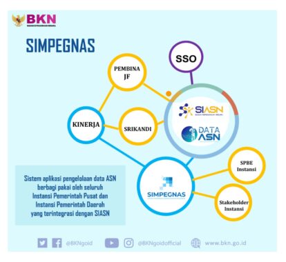 Selanjutnya langkah penataan sistem informasi ASN tersebut diintegrasikan dengan Sistem Informasi Kepegawaian Nasional atau Simpegnas, yakni sistem aplikasi pengelolaan data ASN berbagi pakai untuk seluruh Instansi Pemerintah Pusat dan Instansi Pemerintah Daerah. Tujuannya agar pengelolaan data kepegawaian di masing-masing Instansi yang mencakup Data Perencanaan pegawai; Pengadaan pegawai; Pengembangan pegawai; Data Kenaikan Pangkat/Pensiun, mutasi, status dan kedudukan, pemberhentian pegawai, sampai dengan peremajaan data pegawai akan terhubung langsung dengan database nasional yang dikelola BKN melalui SIASN.