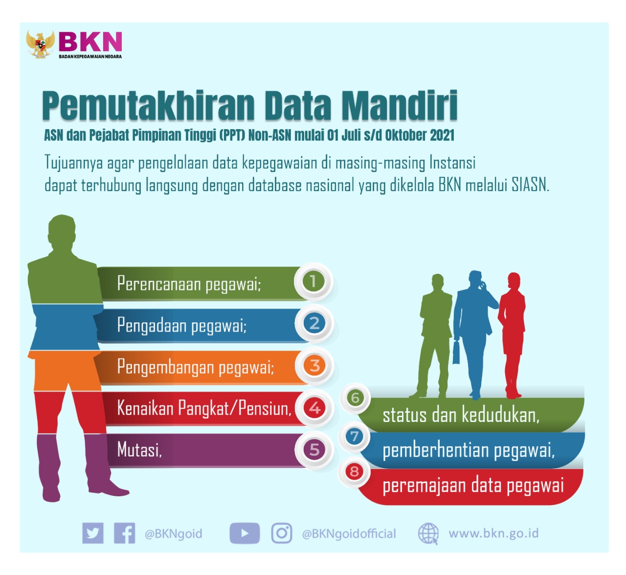 Suharmen menjelaskan bahwa terkait dengan penataan tersebut, BKN memulai dengan membangun sistem aplikasi induk kepegawaian yang disebut Sistem Informasi ASN atau SIASN yang telah dirilis pada Desember 2020 dan melakukan berbagai perbaikan proses bisnis, termasuk pemutakhiran data mandiri oleh setiap ASN melalui MySAPK yang akan dimulai Juli – Oktober 2021.