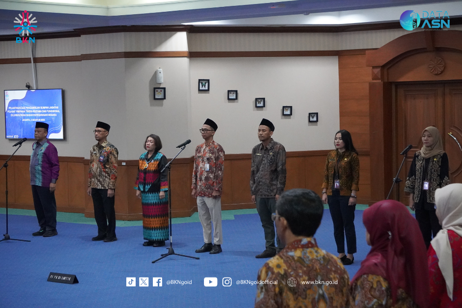 Jakarta – Humas BKN, Plt. Kepala Badan Kepegawaian Negara (BKN) Haryomo Dwi Putranto secara resmi melantik 3 (tiga) Pejabat Pimpinan Tinggi atau JPT Pratama yang menduduki Kepala Kantor Regional (Kanreg) XIII Banda Aceh; Kepala Kanreg IX Jayapura; dan Kepala Kanreg XIV Manokwari. Di samping itu ada 4 (empat) pejabat fungsional yang dilantik di unit kerja BKN Pusat, Jumat (02/08/2024) di kantor pusat BKN Jakarta.