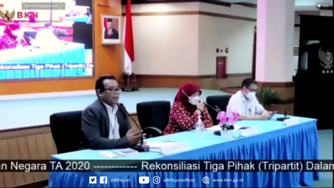 Menurut Kepala Biro Keuangan BKN Wahyu, rekonsiliasi ini merupakan salah satu tahapan penting dalam penyusunan laporan keuangan BKN (Audited). Lanjut Wahyu, rekonsiliasi bertujuan untuk menyesuaikan ketepatan data laporan keuangan BKN dengan hasil audit yang dilakukan BPK. “Dari hasil audit BPK terhadap Laporan Keuangan T.A 2020, BKN sudah melakukan jurnal koreksi atau perbaikan atas pemeriksaan yang dilakukan BPK,” terangnya dalam pertemuan tripartit yang dihadiri Tim Auditor Inspektorat BKN, Tim Pengelola Barang Milik Negara BKN, dan Biro Keuangan BKN.
