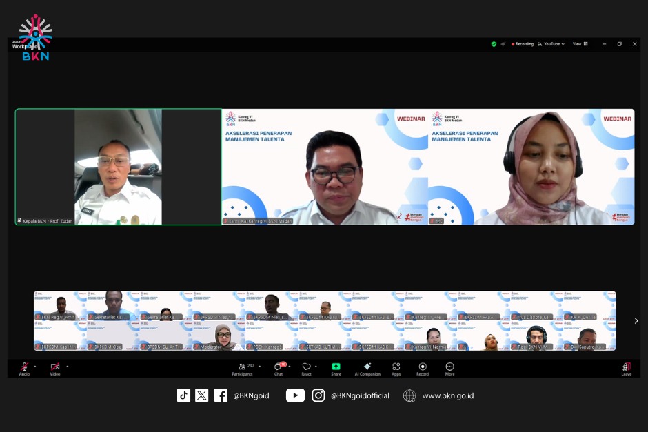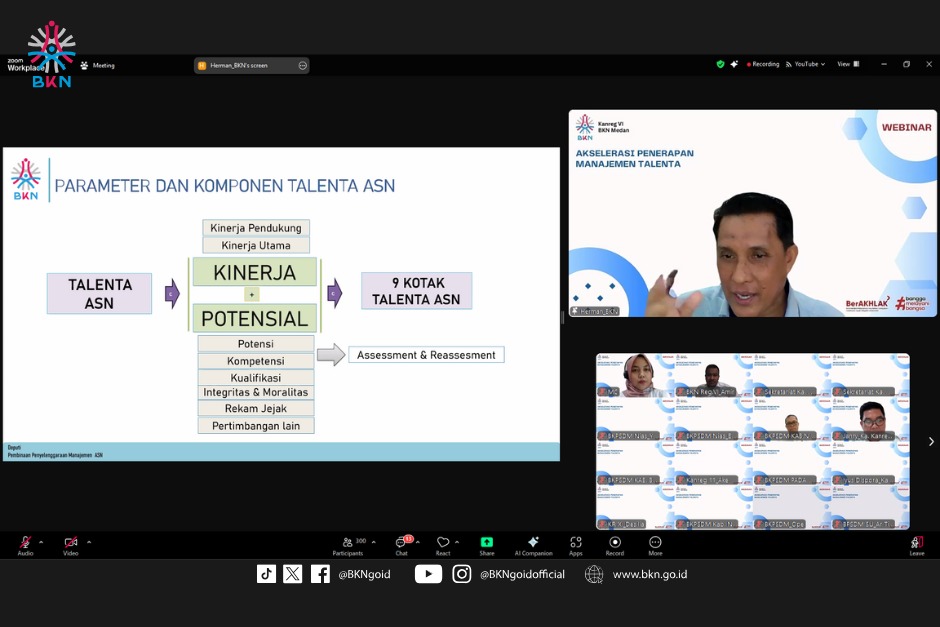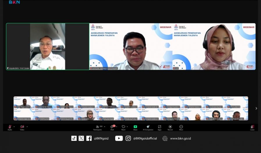 Jakarta – Humas BKN, Kepala Badan Kepegawaian Negara (BKN), Prof. Zudan Arif menyebutkan bahwa Manajemen Talenta tidak hanya bertujuan memilih pejabat terbaik saat ini, tetapi juga mempersiapkan pemimpin masa depan yang sesuai dengan kebutuhan organisasi dan negara. Dalam proses akselerasi manajemen talenta di seluruh instansi, BKN mencari talenta terbaik bangsa yang profesional, berintegritas, kompeten, tangguh, dan adaptif terhadap perubahan.
