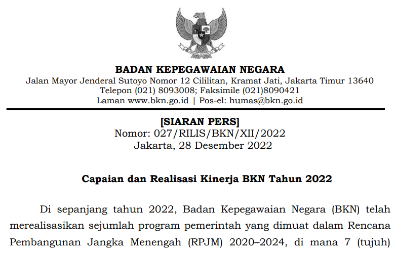 [SIARAN PERS] Nomor: 027/RILIS/BKN/XII/2022