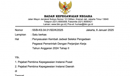 Jakarta – Humas BKN, Pemerintah melalui Badan Kepegawaian Negara (BKN) kembali memperpanjang waktu pendaftaran seleksi Pegawai Pemerintah dengan…