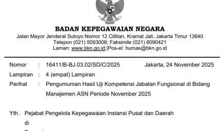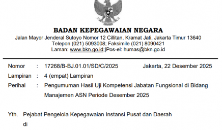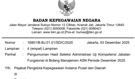 Bersama ini kami sampaikan hasil seleksi administrasi Uji Kompetensi Jabatan Fungsional di Bidang Manajemen ASN periode Desember 2025…