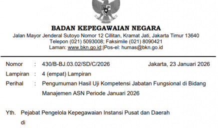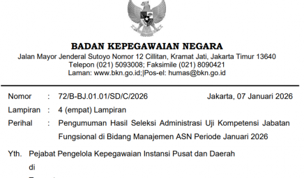Bersama ini kami sampaikan hasil seleksi administrasi Uji Kompetensi Jabatan Fungsional di Bidang Manajemen ASN periode Januari 2026…