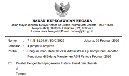 Bersama ini kami sampaikan hasil seleksi administrasi Uji Kompetensi Jabatan Fungsional di Bidang Manajemen ASN periode Februari 2026…