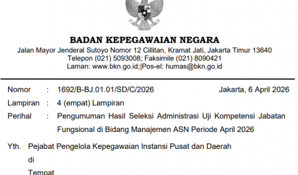 Pengumuman Hasil Seleksi Administrasi Uji Kompetensi Jabatan Fungsional di Bidang Manajemen ASN Periode April 2026