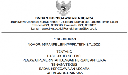 Merujuk pada Pengumuman Ketua Panitia Seleksi Pegawai Pemerintah dengan Perjanjian Kerja (PPPK) Badan Kepegawaian Negara (BKN) Tahun Anggaran…