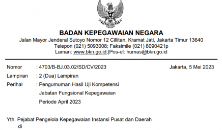 Berkenaan dengan telah dilaksanakannya Uji Kompetensi Jabatan Fungsional Kepegawaian pada tanggal 4 April 2023 dan 10 – 12…