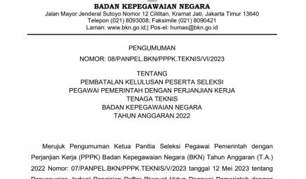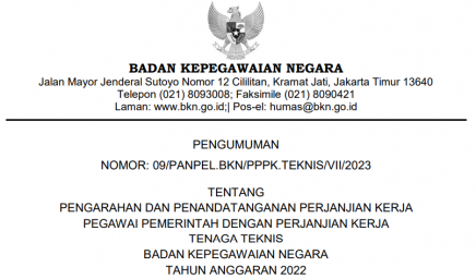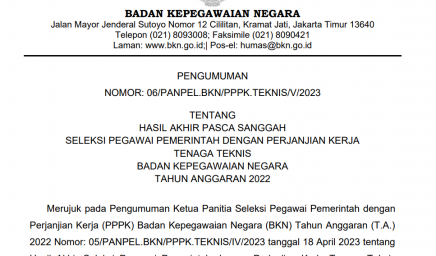 Merujuk Pengumuman Ketua Panitia Seleksi Pegawai Pemerintah dengan Perjanjian Kerja (PPPK) Badan Kepegawaian Negara (BKN) Tahun Anggaran (T.A.)…