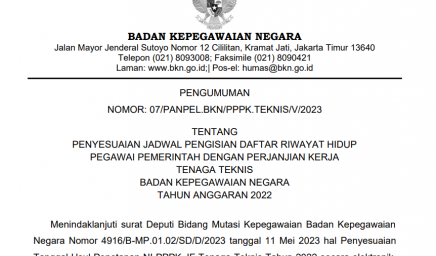 Menyusuli surat Plt. Kepala Badan Kepegawaian Negara Nomor 3819/B- KS.04.01/SD/K/2023 tanggal 10 April 2023 perihal Penyesuaian Kembali Jadwal…