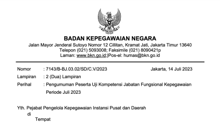 Pengumuman Hasil Uji Kompetensi Jabatan Fungsional Bidang Kepegawaian Periode Juli 2023