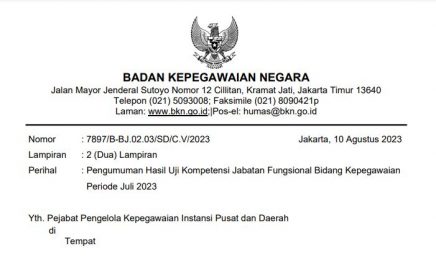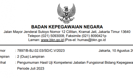 Berkenaan dengan telah dilaksanakannya Uji Kompetensi Jabatan Fungsional Bidang Kepegawaian pada tanggal 21 Juli 2023 dan 24-28 Juli…