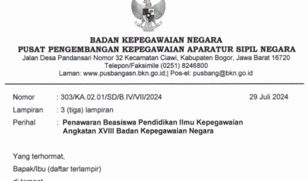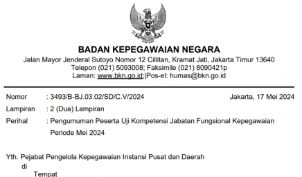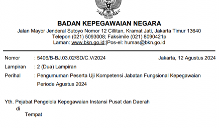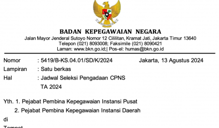 Menindaklanjuti Surat Plt. Kepala Badan Kepegawaian Negara Nomor 5900/B-KS.04.01/SD/K/202 tanggal 5 September 2024 hal Penyesuaian Jadwal Seleksi Pengadaan…