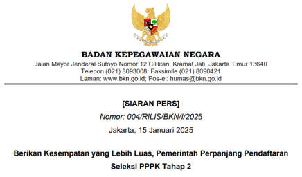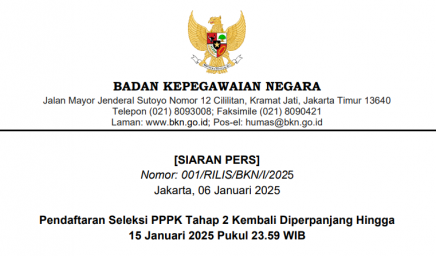 [SIARAN PERS] Nomor: 001/RILIS/BKN/I/2025 Pendaftaran Seleksi PPPK Tahap 2 Kembali Diperpanjang Hingga 15 Januari 2025 Pukul 23.59 WIB…