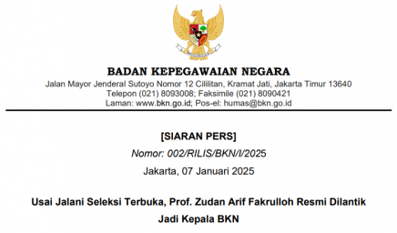 [SIARAN PERS] Nomor: 002/RILIS/BKN/I/2025 Usai Jalani Seleksi Terbuka, Prof. Zudan Arif Fakrulloh Resmi Dilantik Jadi Kepala BKN Setelah…