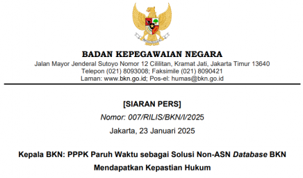 [SIARAN PERS] Nomor: 007/RILIS/BKN/I/2025 Kepala BKN: PPPK Paruh Waktu sebagai Solusi Non-ASN Database BKN Mendapatkan Kepastian Hukum Pemerintah…