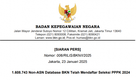 [SIARAN PERS] Nomor: 006/RILIS/BKN/I/2025 1.608.743 Non-ASN Database BKN Telah Mendaftar Seleksi PPPK 2024 Pendaftaran seleksi Pegawai Pemerintah dengan…