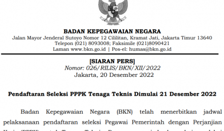 [SIARAN PERS] Nomor: 026/RILIS/BKN/XII/2022 Jakarta, 20 Desember 2022 Badan Kepegawaian Negara (BKN) telah menerbitkan jadwal pelaksanaan pendaftaran…