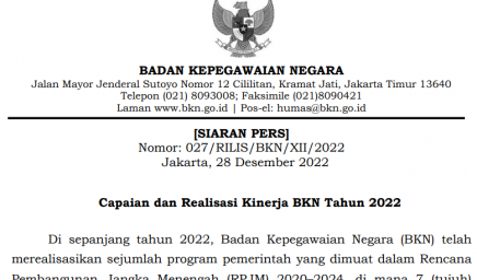 [SIARAN PERS] Nomor: 027/RILIS/BKN/XII/2022 Jakarta, 28 Desember 2022 Di sepanjang tahun 2022, Badan Kepegawaian Negara (BKN) telah…
