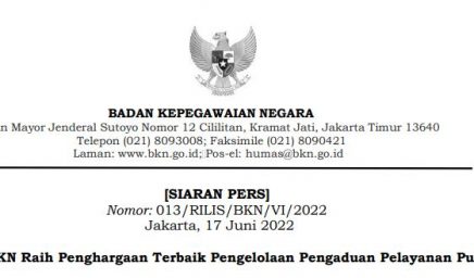 [SIARAN PERS] Nomor: 013/RILIS/BKN/VI/2022 Jakarta, 17 Juni 2022 BKN Raih Penghargaan Terbaik Pengelolaan Pengaduan Pelayanan Publik Badan Kepegawaian…