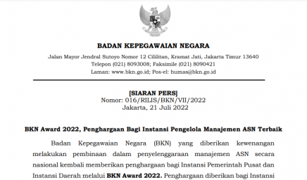 [SIARAN PERS] Nomor: 016/RILIS/BKN/VII/2022 Jakarta, 21 Juli 2022 BKN Award 2022, Penghargaan Bagi Instansi Pengelola Manajemen ASN Terbaik…