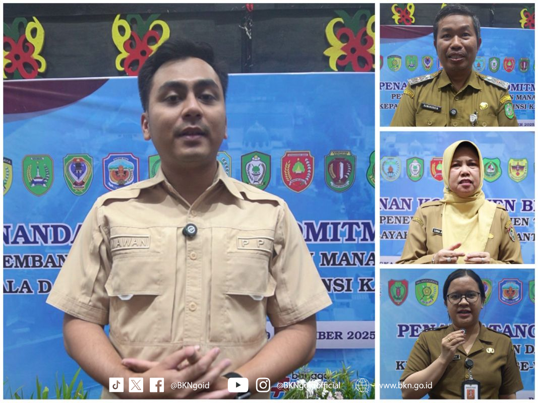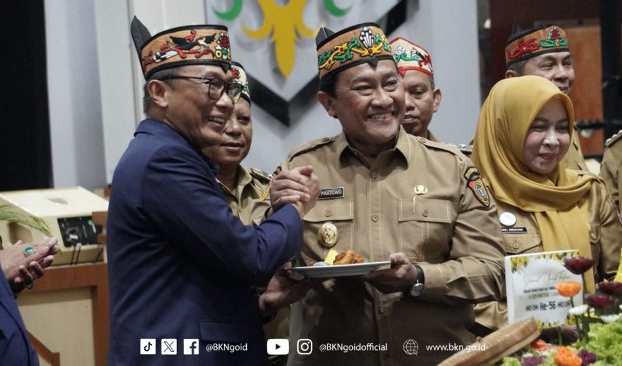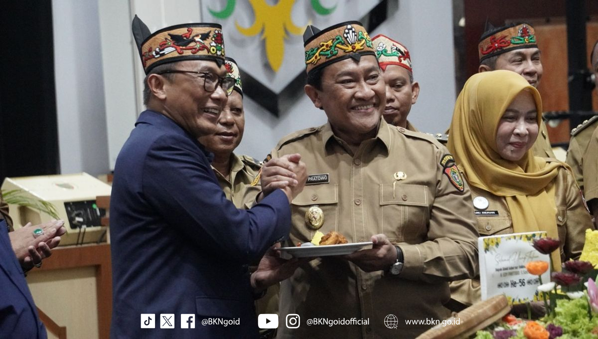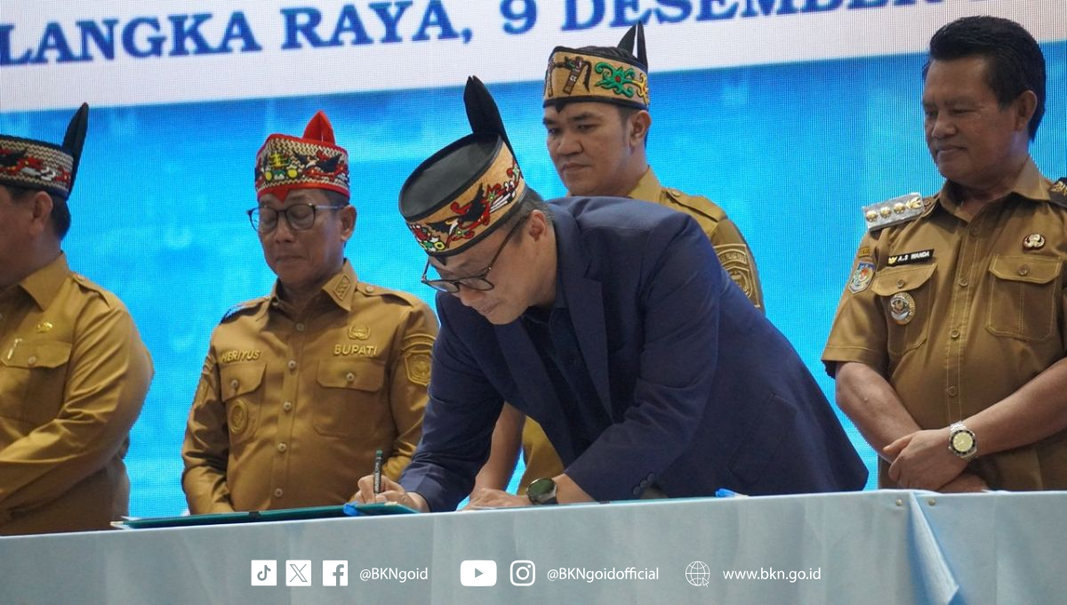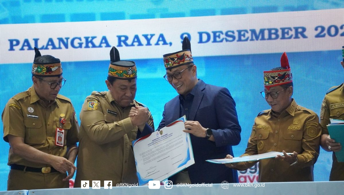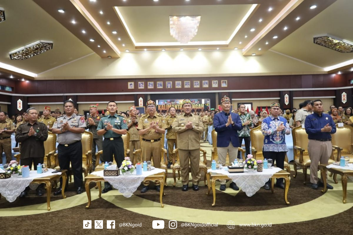 Palangka Raya – Humas BKN, Badan Kepegawaian Negara (BKN) terus mendukung penerapan Manajemen Talenta ASN secara nasional, baik di lingkup instansi pemerintah pusat maupun daerah. Kali ini giliran Pemerintah Provinsi Kalimantan Tengah menyatakan kesiapannya untuk menerapkan salah satu program prioritas nasional tersebut, melalui Penandatanganan Komitmen Bersama Kepala Daerah se-Provinsi Kalimantan Tengah (Kalteng), yang dihadiri para bupati dan wali kota se-Kalteng, pimpinan instansi vertikal, serta lebih dari 1.500 pegawai ASN, Selasa (09/12/2025) di Kantor Gubernur Kalimantan Tengah.