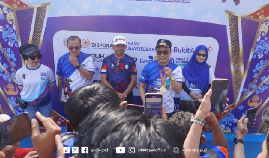 Palembang – Humas BKN, Sebagai salah satu rangkaian perhelatan Pekan Olahraga Nasional (Pornas) Korpri ke XVII yang digelar di Palembang tahun ini, Kepala BKN sekaligus Ketua Dewan Pengurus Korpri Nasional, Prof. Zudan membuka garis start Fun Run Korpri pagi ini, Sabtu (11/10/2025). Ribuan peserta Fun Run memanfaatkan momentum ini untuk menunjukkan semangat kebersamaan dan sportivitas.