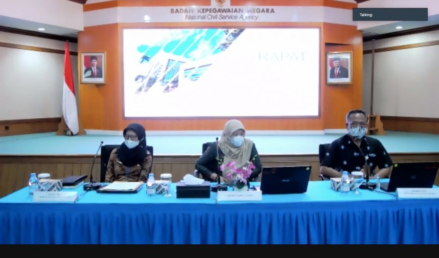 Rapat yang dilaksanakan secara luring dan daring ini, diikuti oleh sekitar 70 peserta, yakni seluruh Kepala Kantor Regional BKN I – XIV, Kepala Pusat Pengembangan Kepegawaian Aparatur Sipil Negara (ASN), Direktur Kinerja ASN, Inspektur BKN dan seluruh Kepala Biro di lingkungan Sekretariat Utama BKN serta yang mewakili. nsp